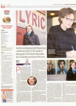 Belfast Telegraph titled 'Author and playwright Rosemary Jenkinson tells of her pride at being part of a theatre founded by visionary women of the arts', written by Lee Henry.