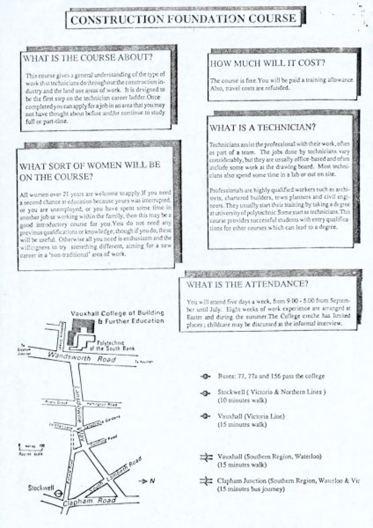 Belfast Institute of Further and Higher Education, 5th February 1992, enclosing a further letter to Lord Belstead of 15th January 1992, regarding provision of women's education in colleges of further education, which itself includes poster and course document for induction of a women's course in construction.