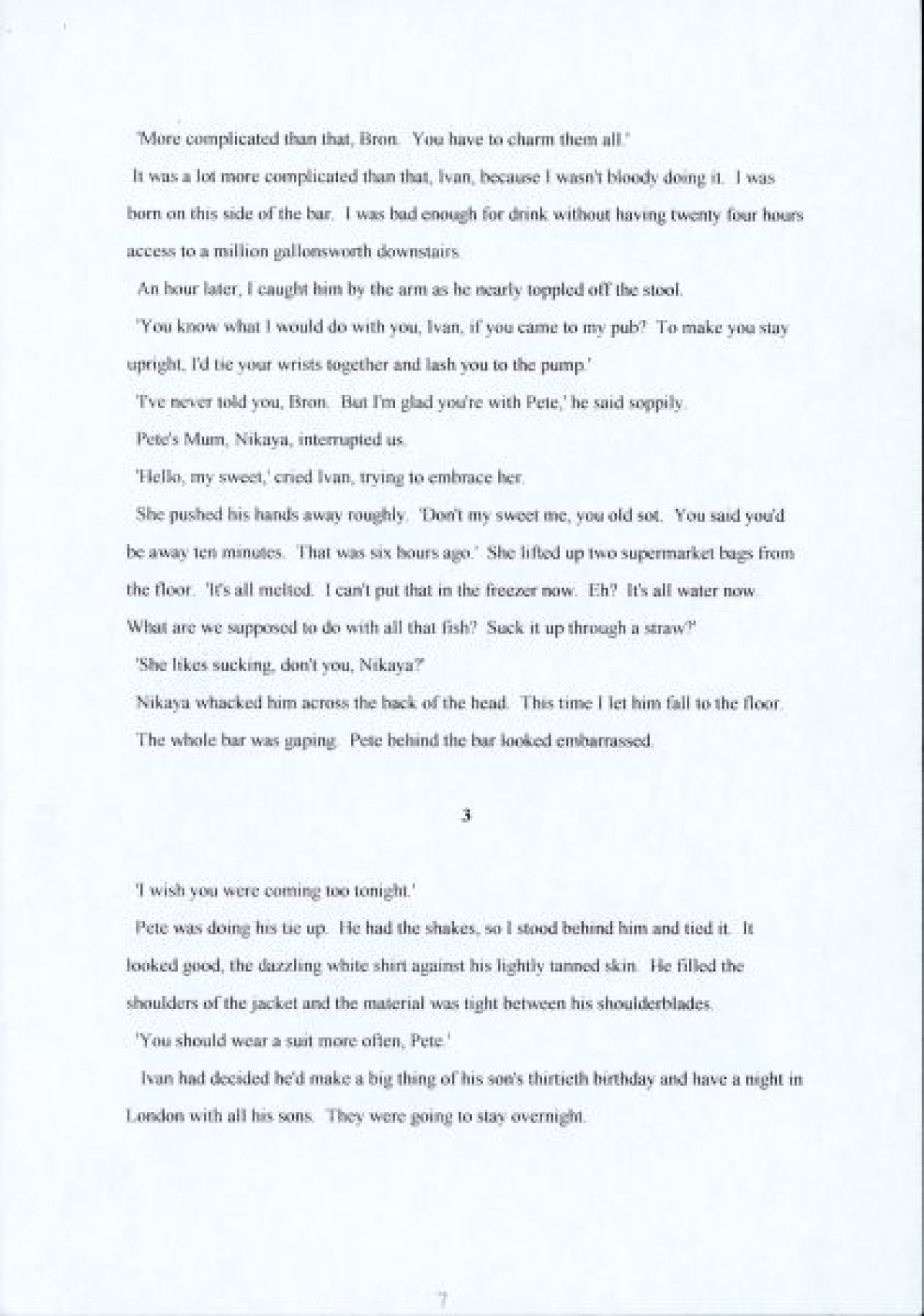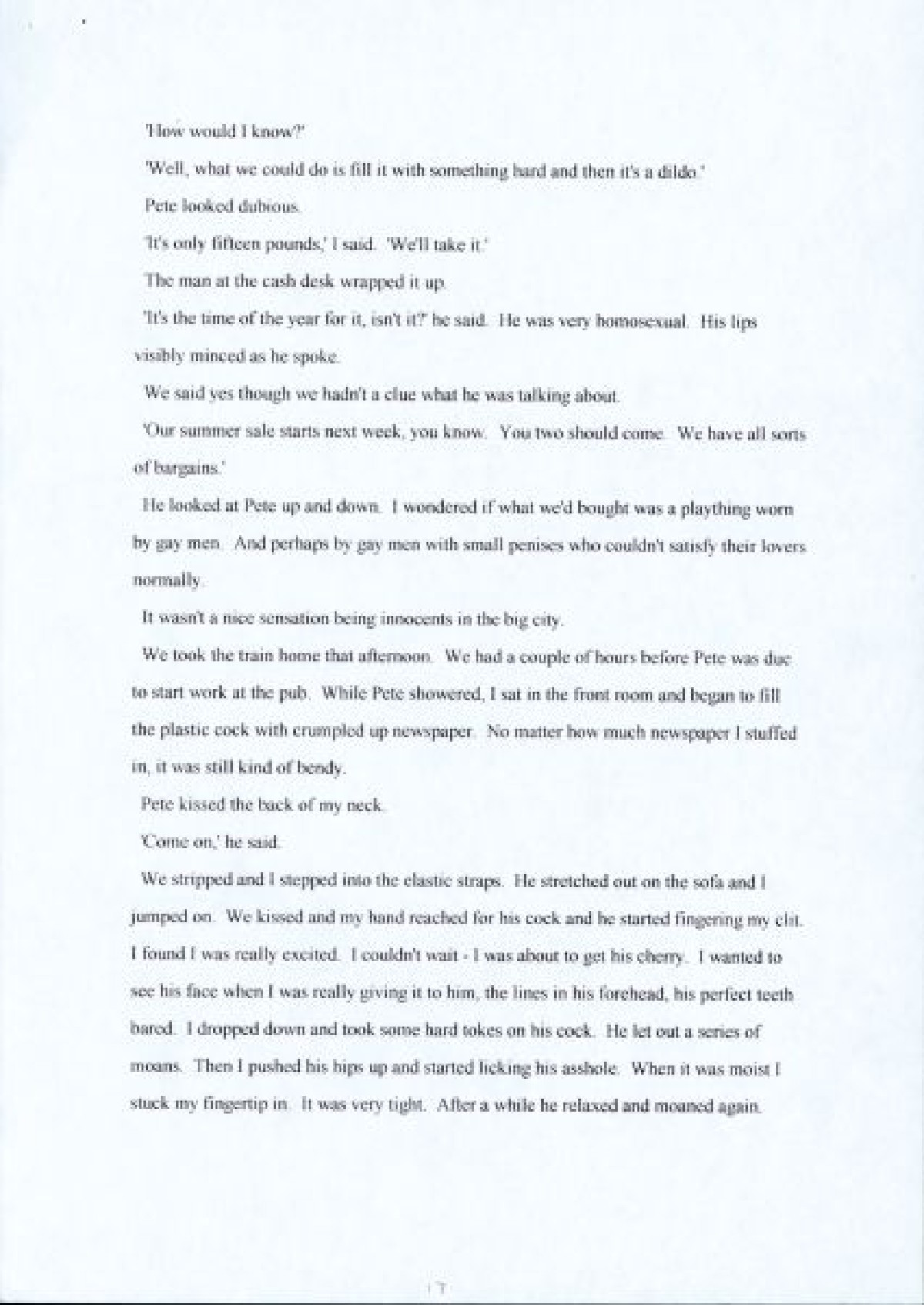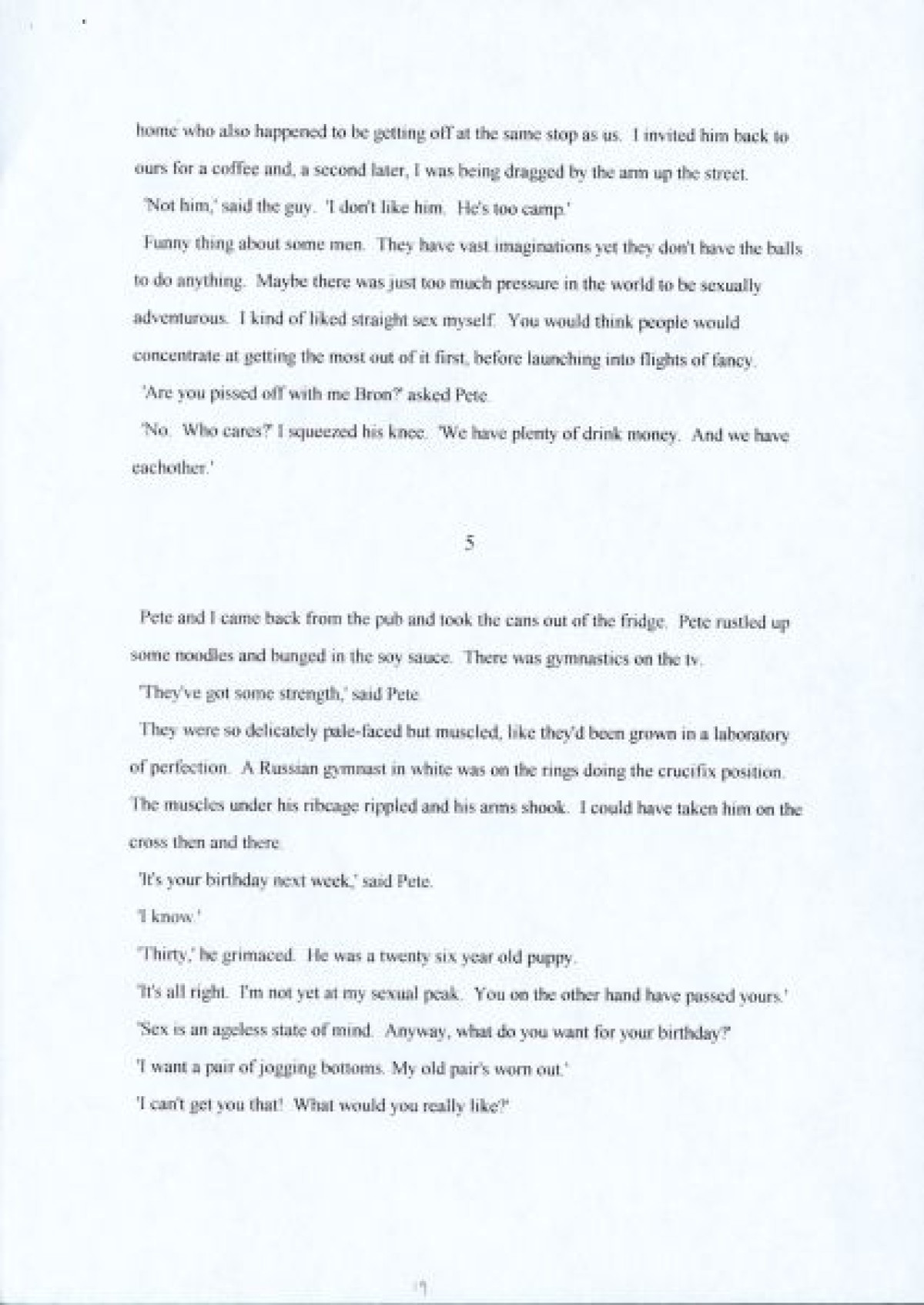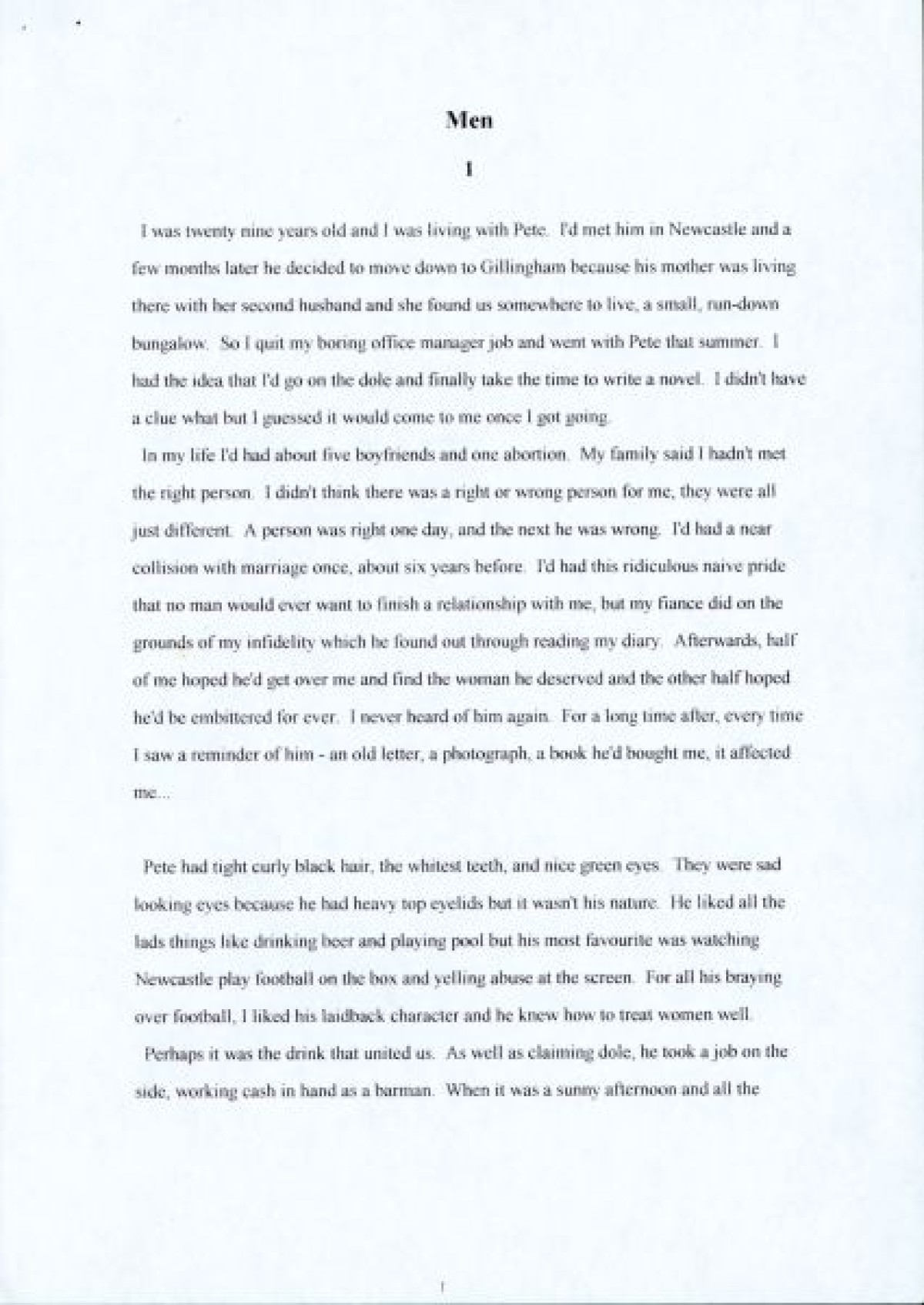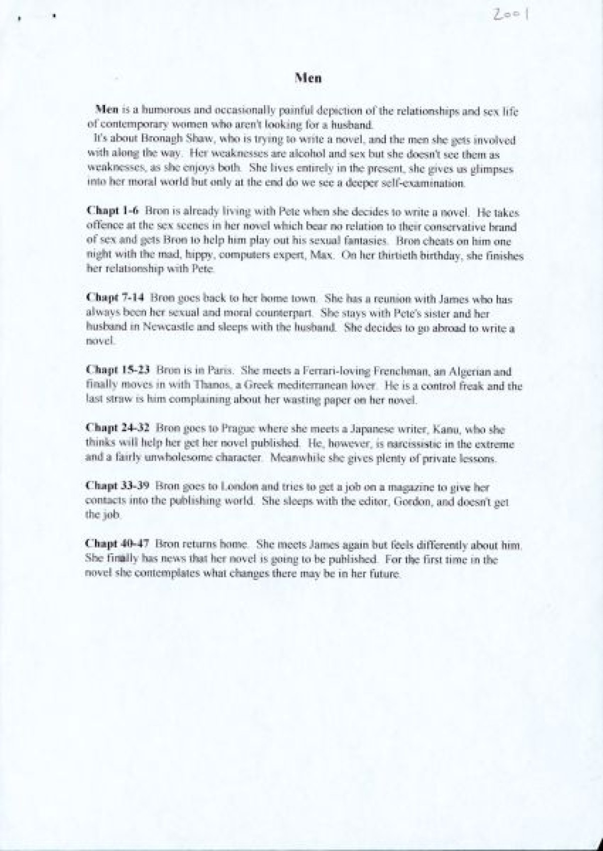 Short story by Rosemary Jenkinson, titled "Men," about the relationships and sex life of modern women who do not want a husband. Contains a synopsis, chapter overview, and samples from the story.