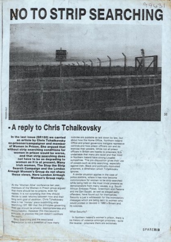 Article responding to ex-prisoner and campaigner Chris Tchaikovsky, regarding strip-searching in prisons. Published: