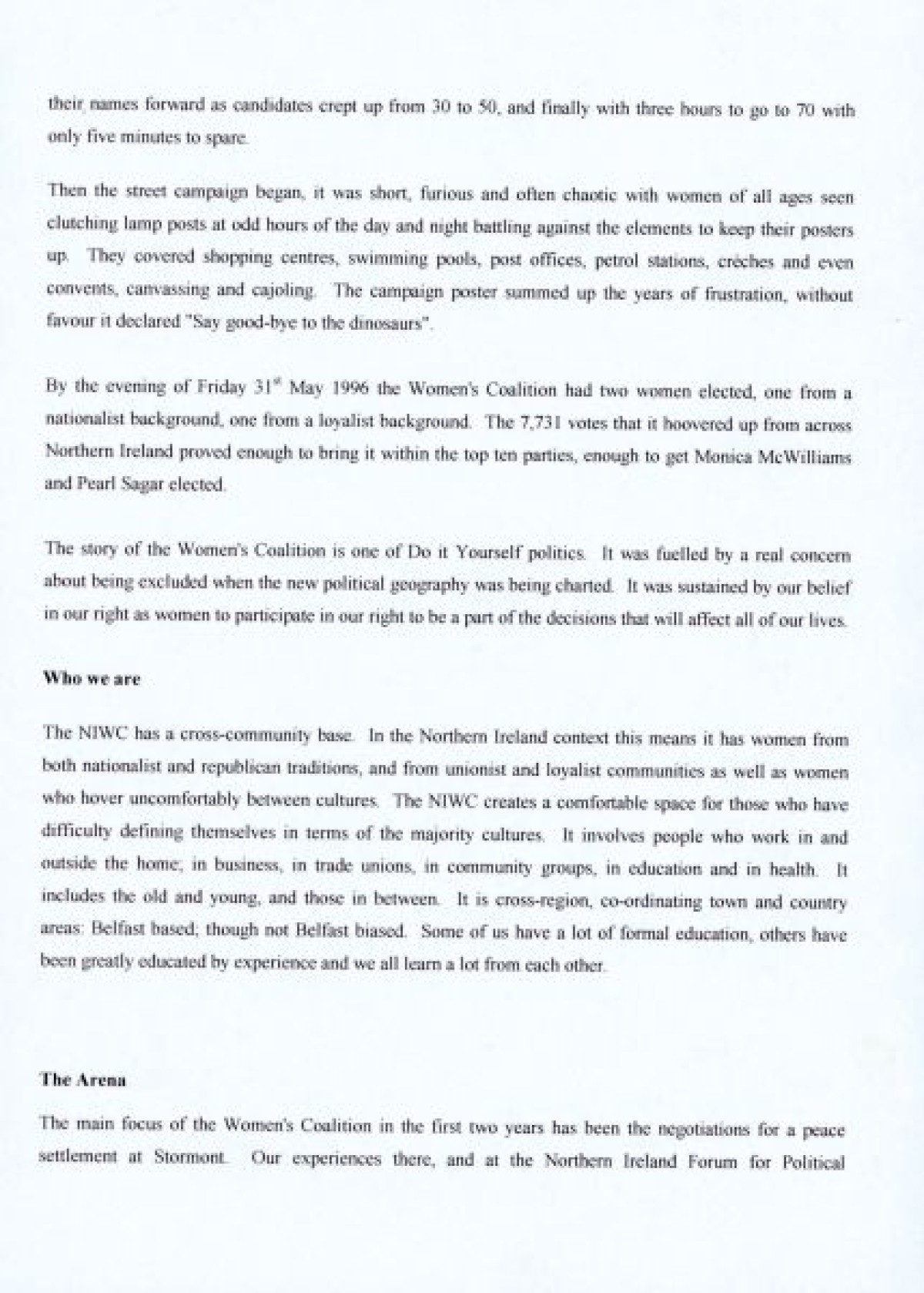 Northern Ireland Women's Coalition as part of the programme for the 'Women's League of Burma Chiang Mai Conference' between 19-20