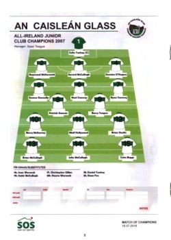 Stop the Drill Campaign; diagram of player positions; information about the 2007 All Ireland Club Champions; Greencastle's Historic Connection with 'The Flight of the Earls'; An Troid Atá Romhainn verses; and an essay about the Sperrins landscape.