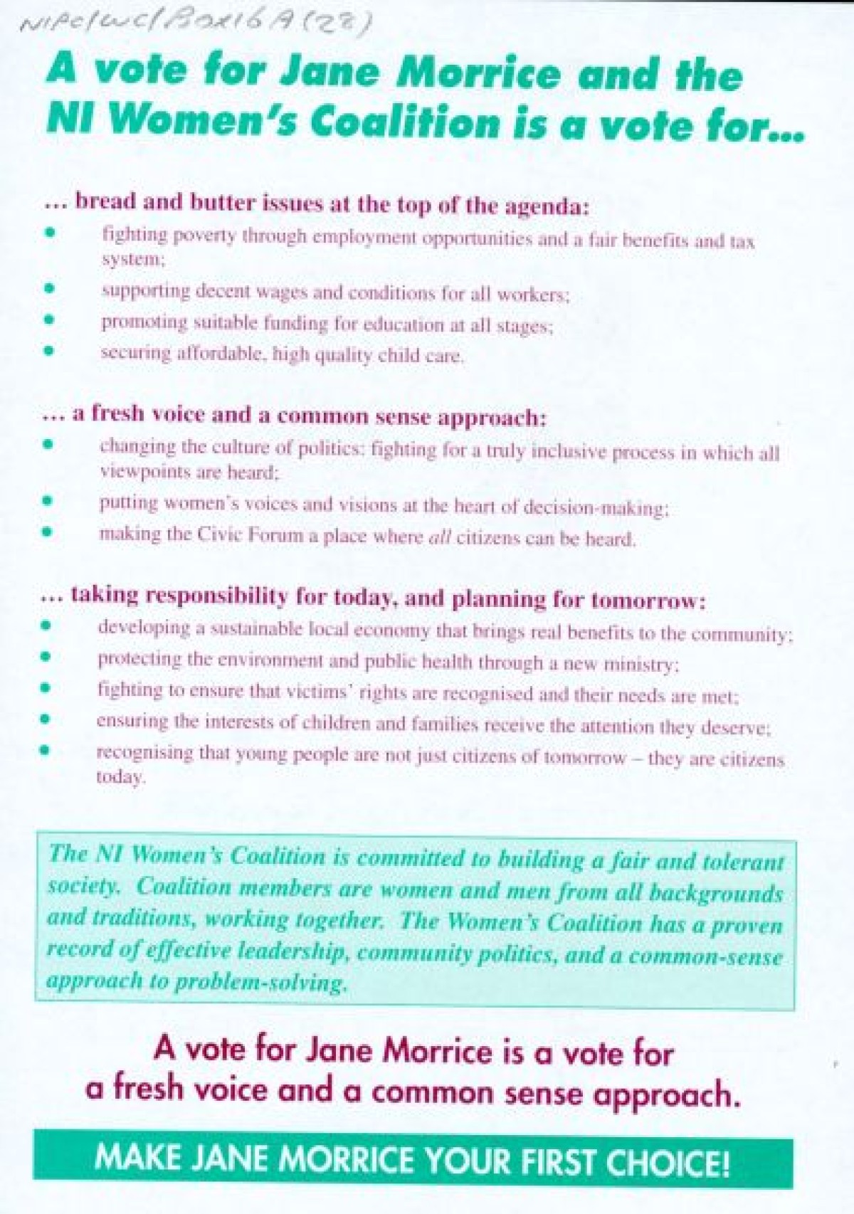 Northern Ireland Political Collection, Northern Ireland Women's Coalition,